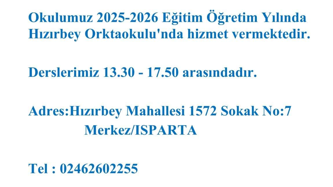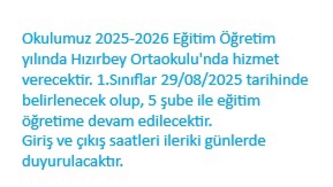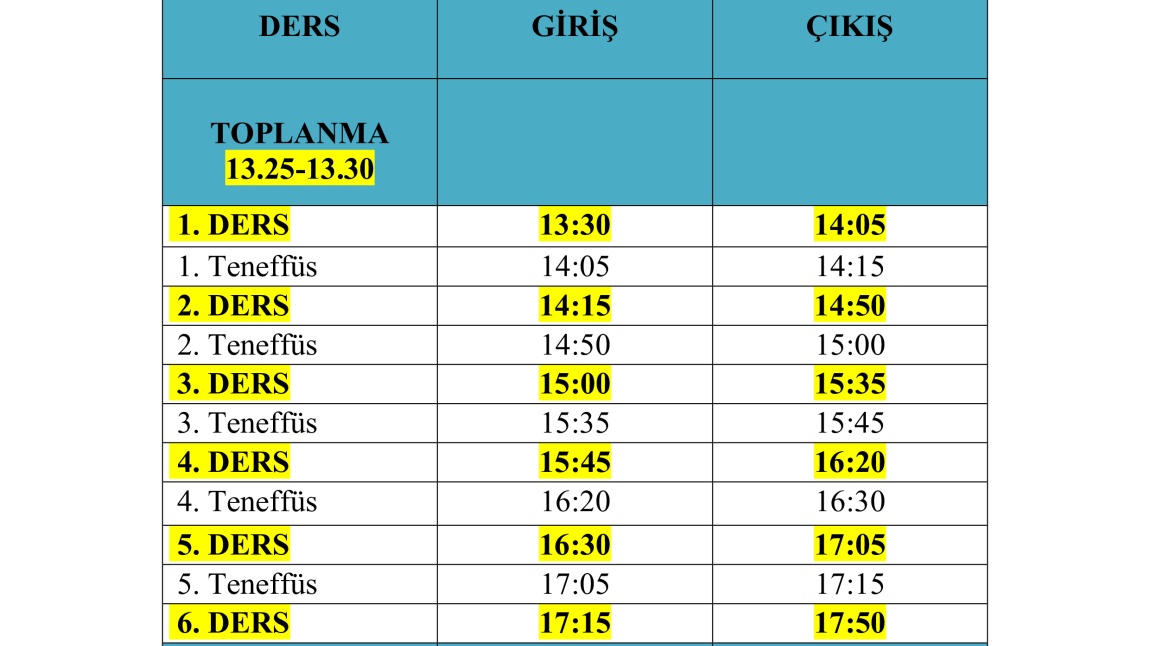 2025-2026 Eğitim Öğretim Yılı Ders Giriş Çıkış saatlerimiz.